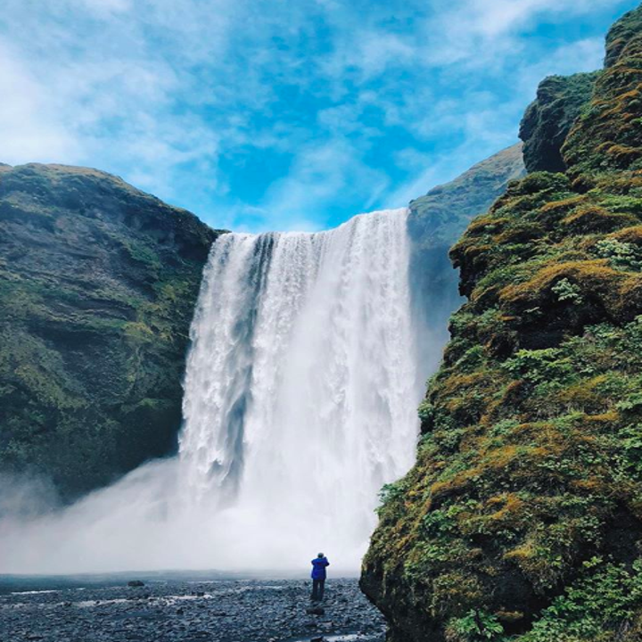 As you drive along Iceland’s southern coast, you’ll pass rugged mountains, lush fields full of grazing sheep and horses, and hundreds of waterfalls.