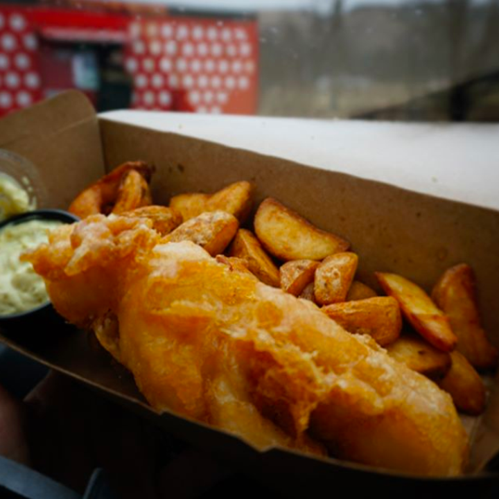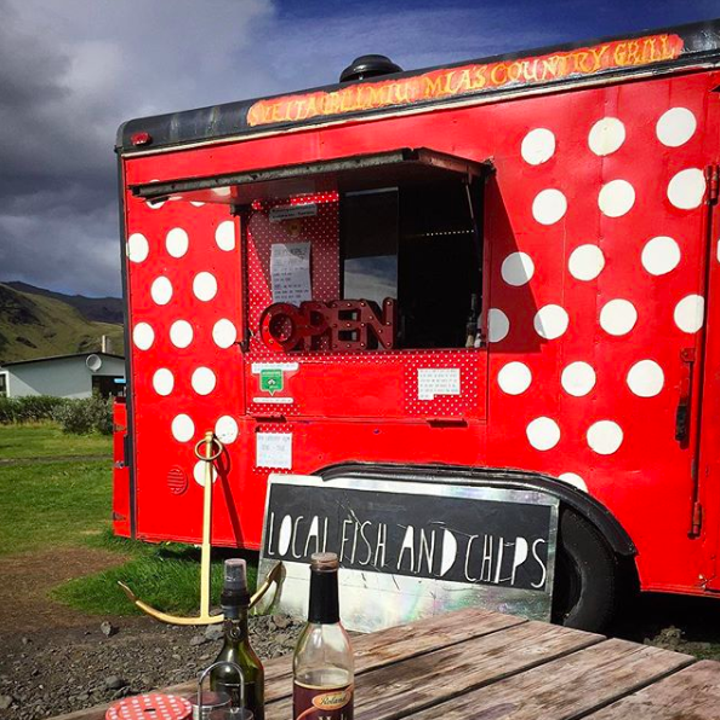 You’ll find delicious, beer-battered, extra crispy fish and chips — what many call the best in Iceland — just a short walk from Skogafoss.