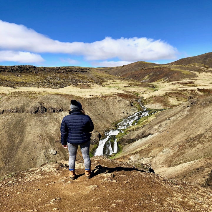 The 3.5 kilometer hike to the hot river — up the mountain and through a valley, passing waterfalls and canyons along the way — takes about an hour each way.